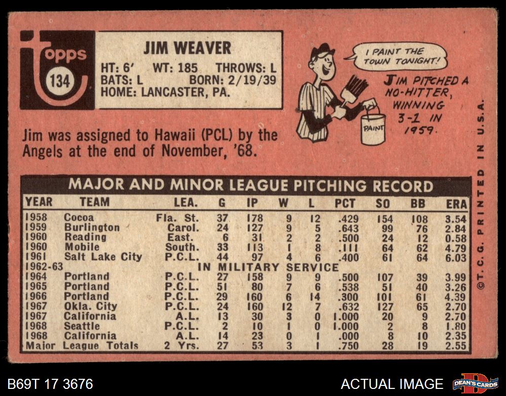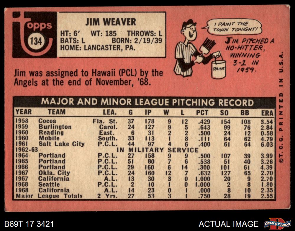 1969 Topps #134 Jim Weaver 2 - GOOD