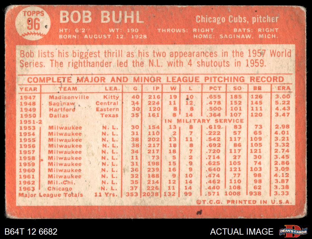 1964 Topps #96 Bob Buhl AUTHENTIC