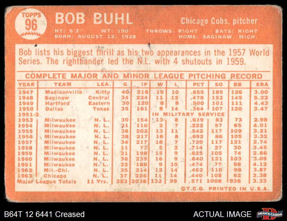 1964 Topps #96 Bob Buhl Front Thumbnail