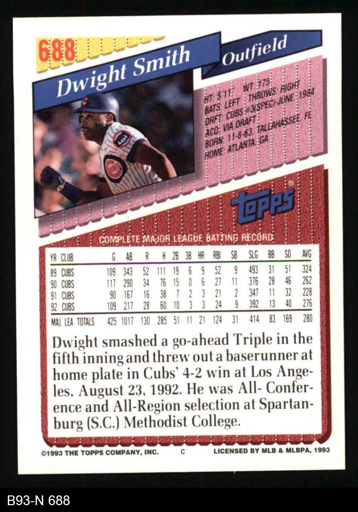 1993 Topps #688 Dwight Smith 8 - NM/MT
