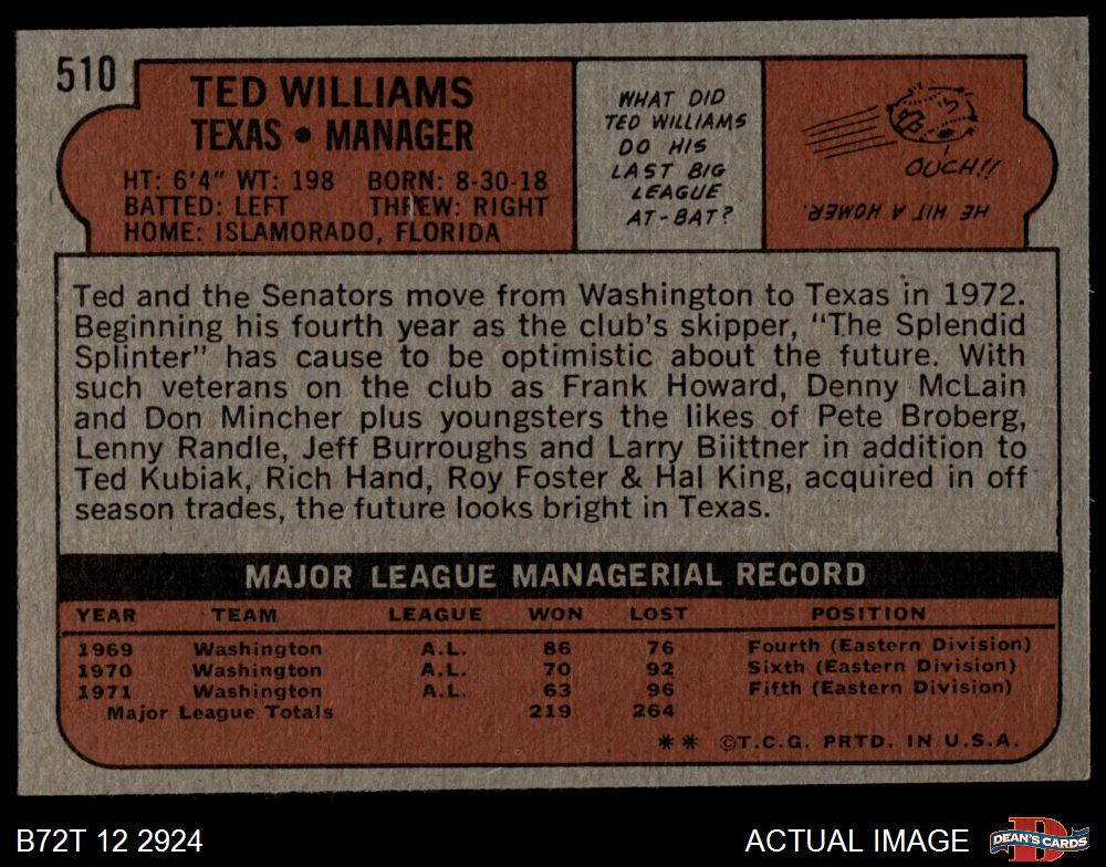1972 Topps #510 Ted Williams 4 - VG/EX