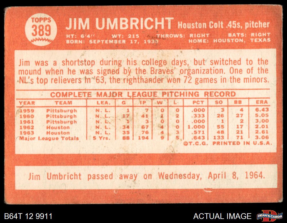 1964 Topps #389 Jim Umbricht 2 - GOOD