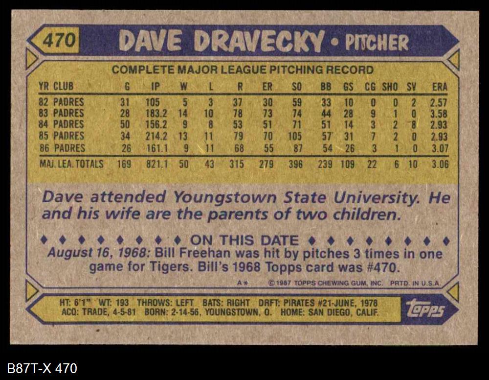1987 Topps #470 Dave Dravecky
