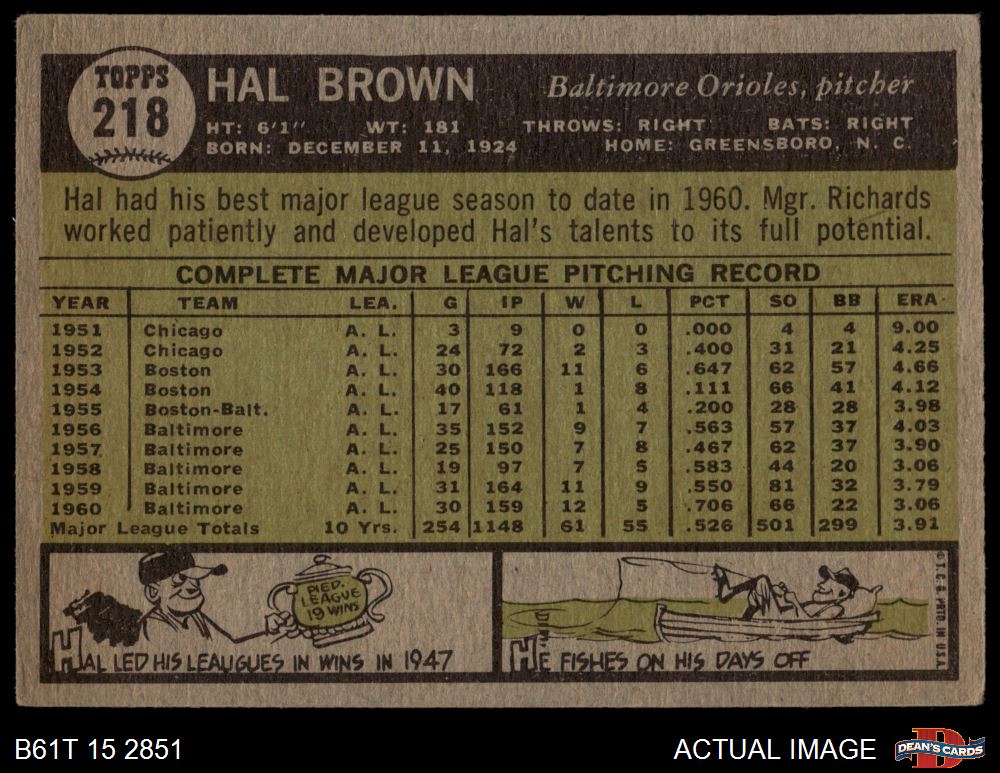 1961 Topps #218 Hal Brown 2 - GOOD