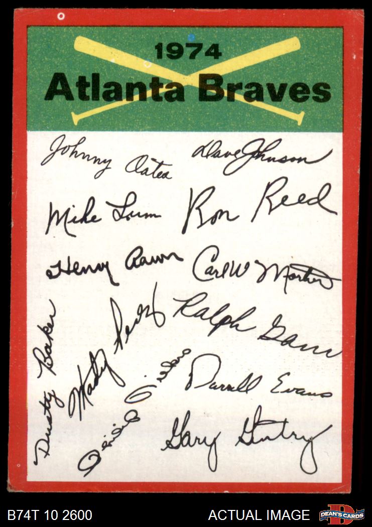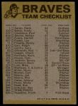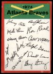 1974 Topps Red Team Checklist Atlanta Braves Red Team Checklist
