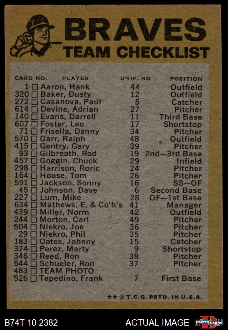 1974 Topps Atlanta Braves Red Team Checklist 5 - EX
