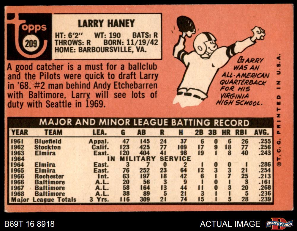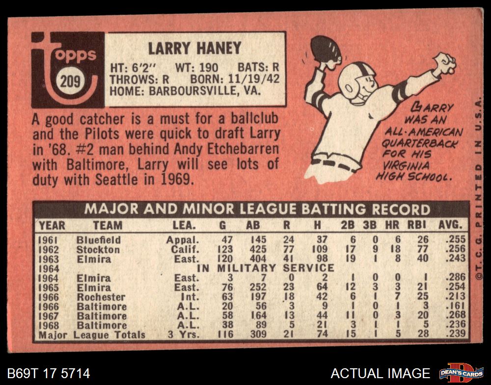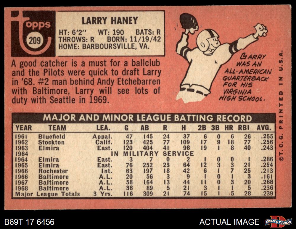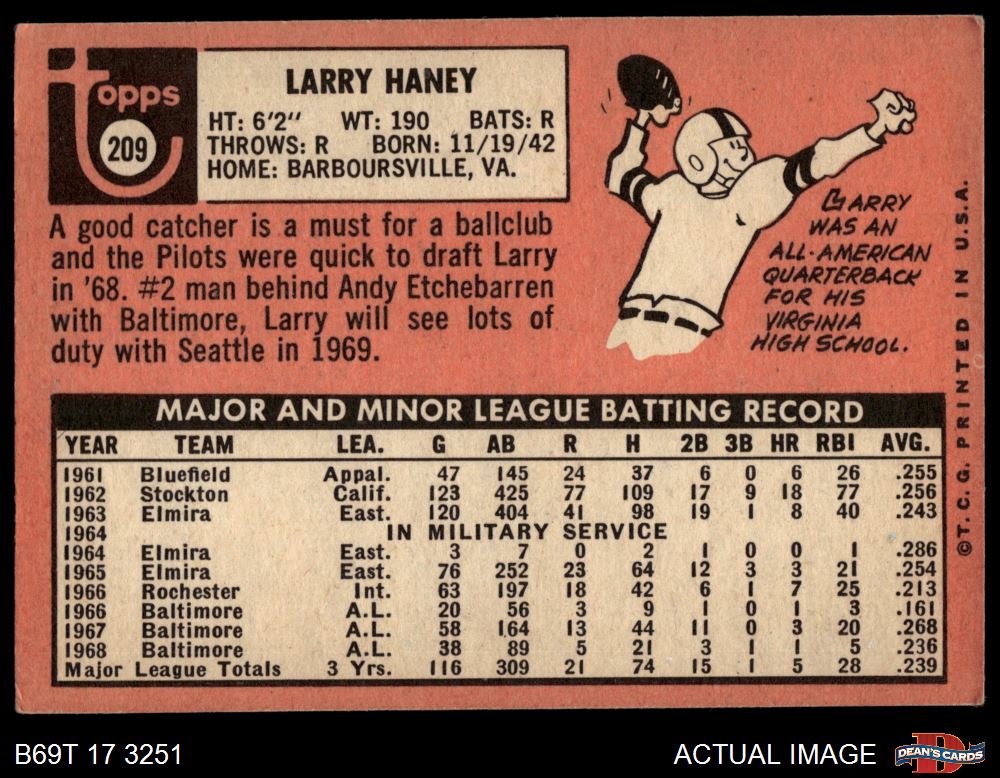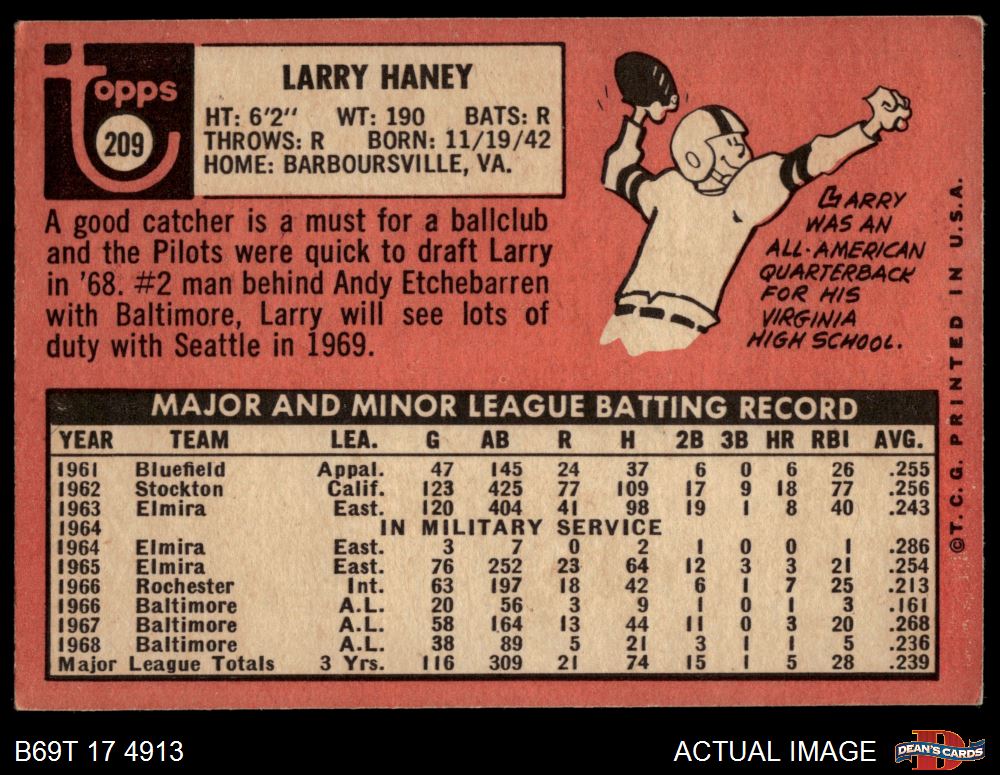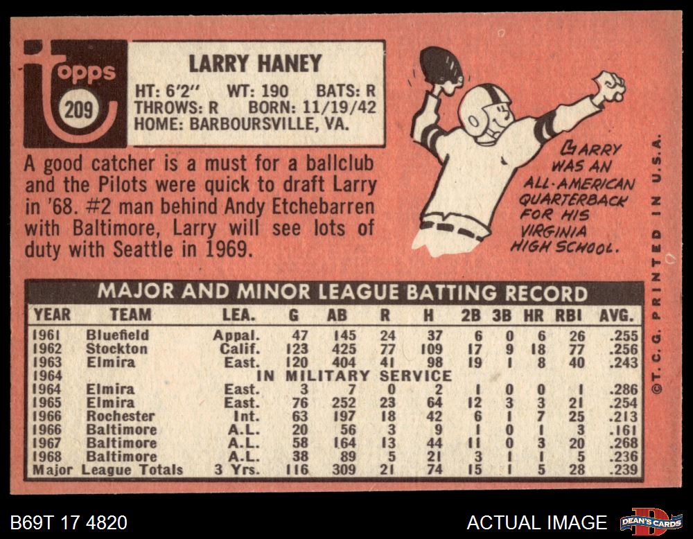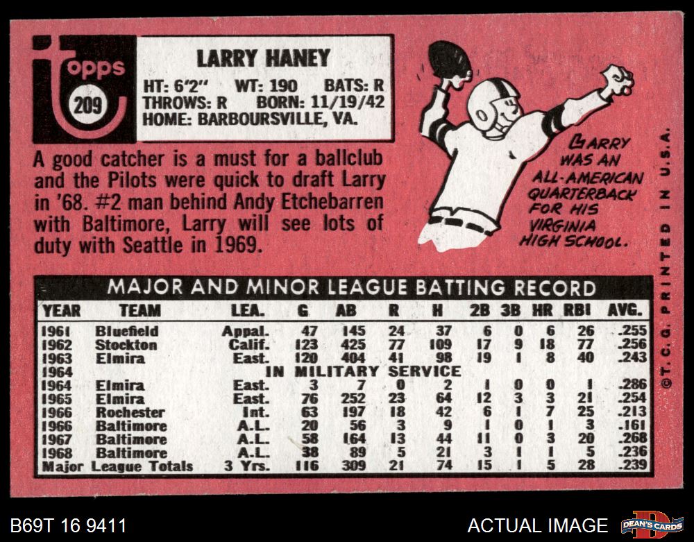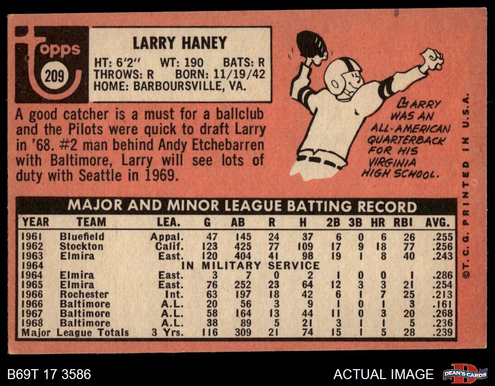1969 Topps #209 Larry Haney