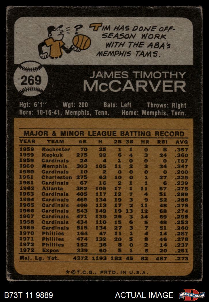 1973 Topps #269 Tim McCarver 2.5 - GD+