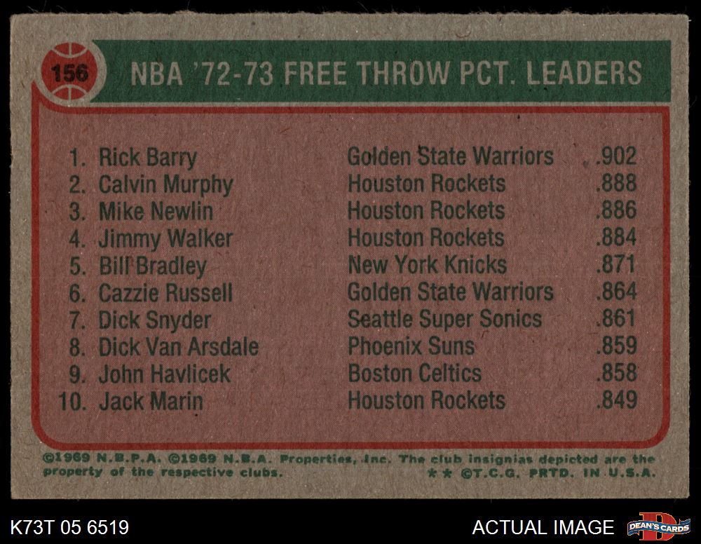 1973 Topps #156 NBA Free Throw Pct. Leaders