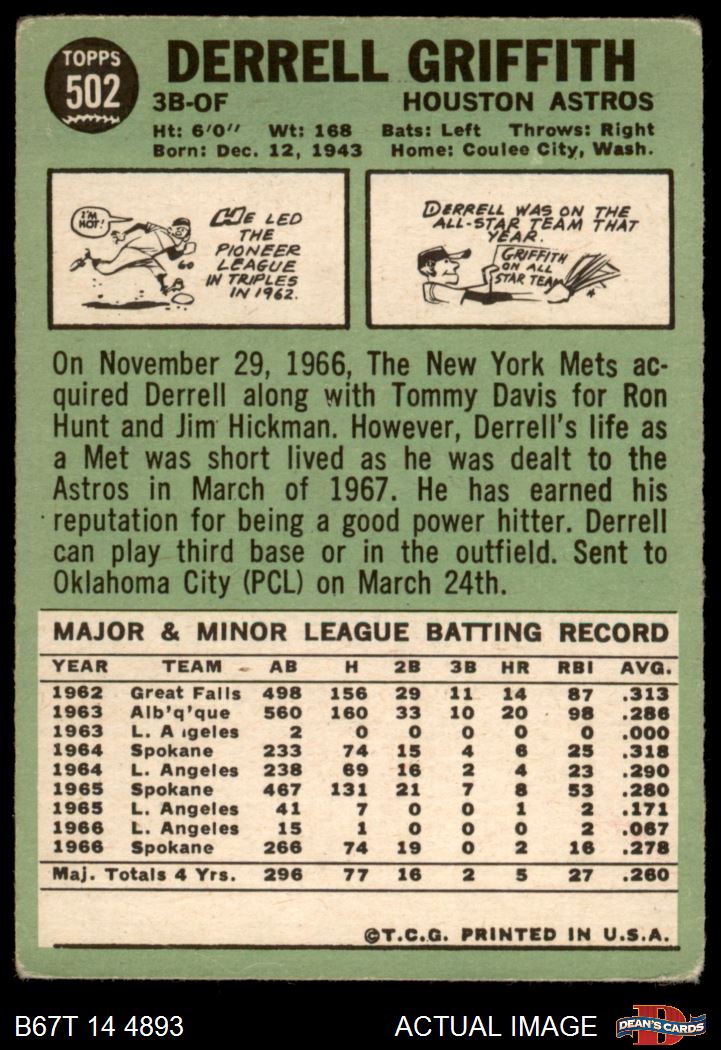 1967 Topps #502 Derrell Griffith 1 - POOR