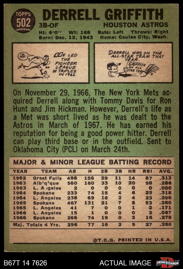 1967 Topps #502 Derrell Griffith 4 - VG/EX
