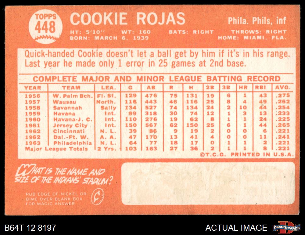 1964 Topps #448 Cookie Rojas 3 - VG