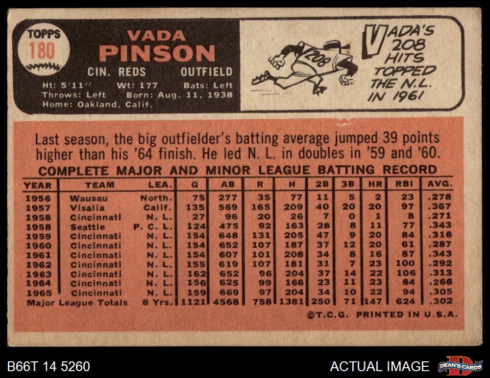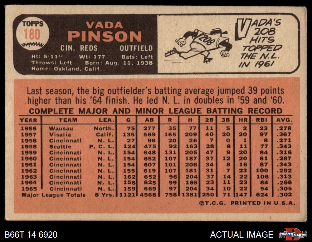 1966 Topps #180 Vada Pinson 2 - GOOD