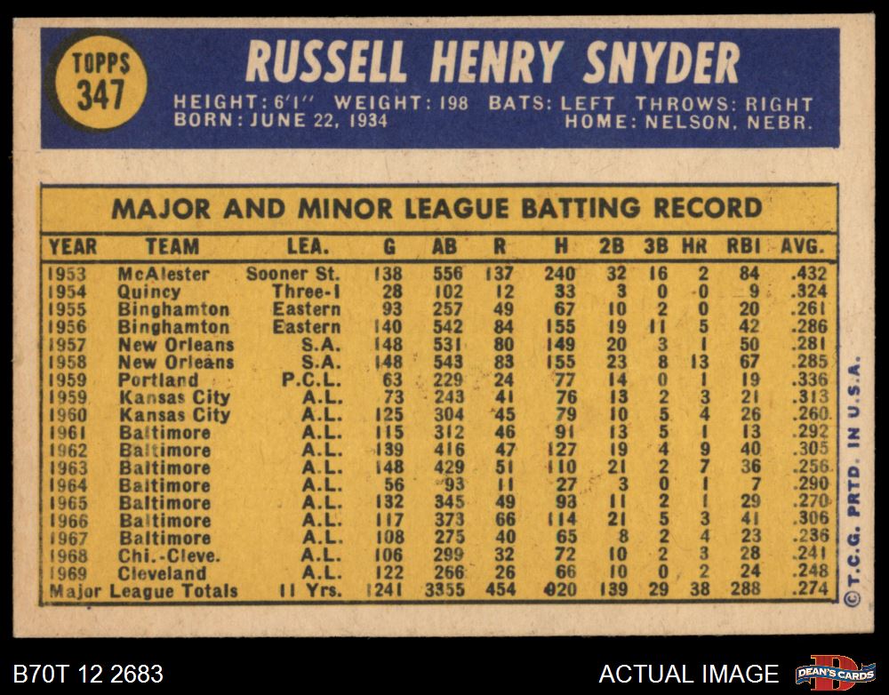 1970 Topps #347 Russ Snyder