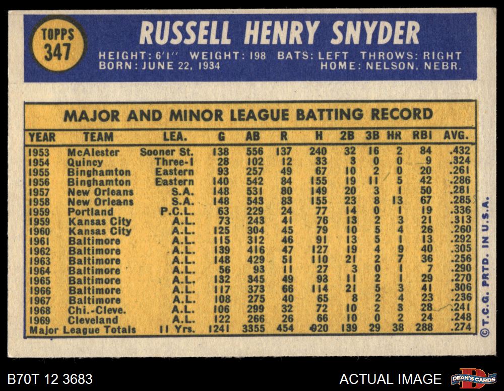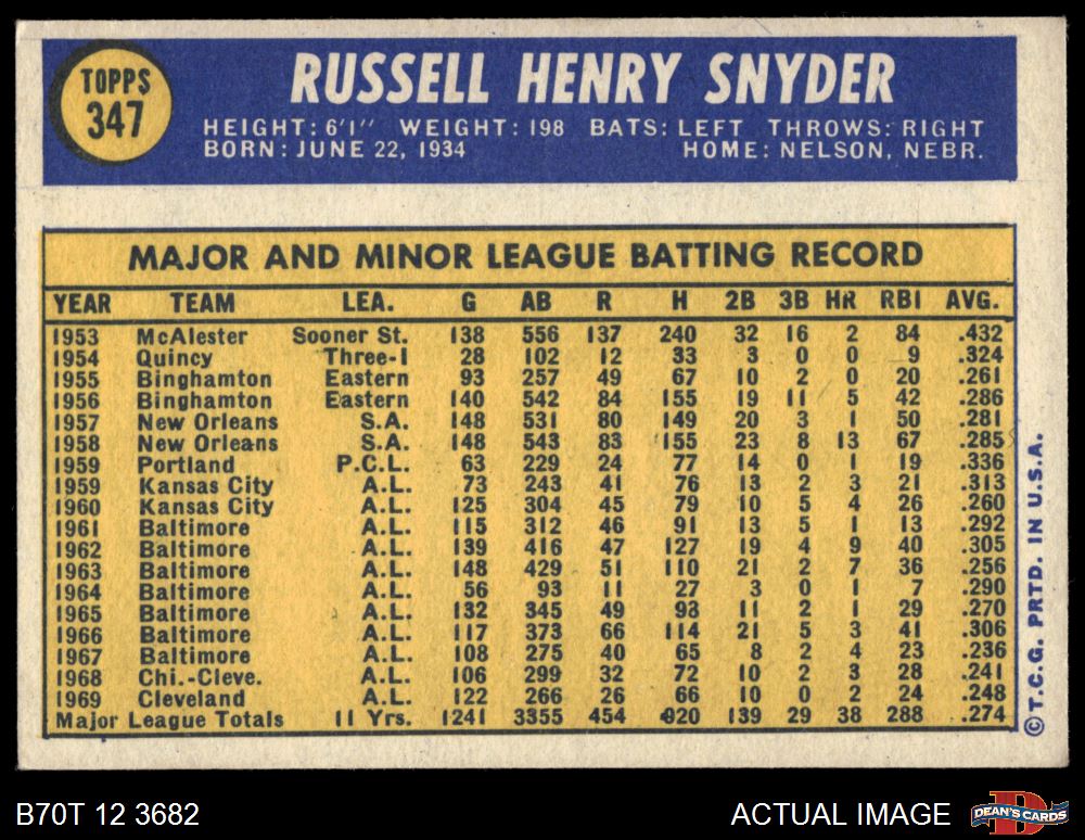 1970 Topps #347 Russ Snyder 5 - EX