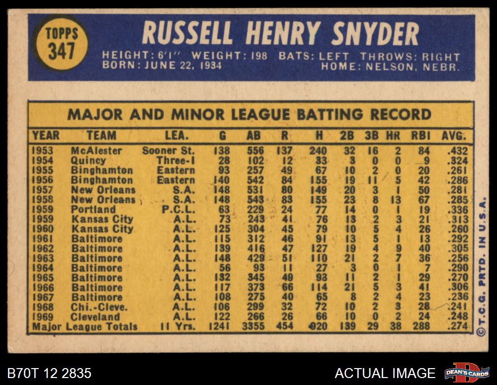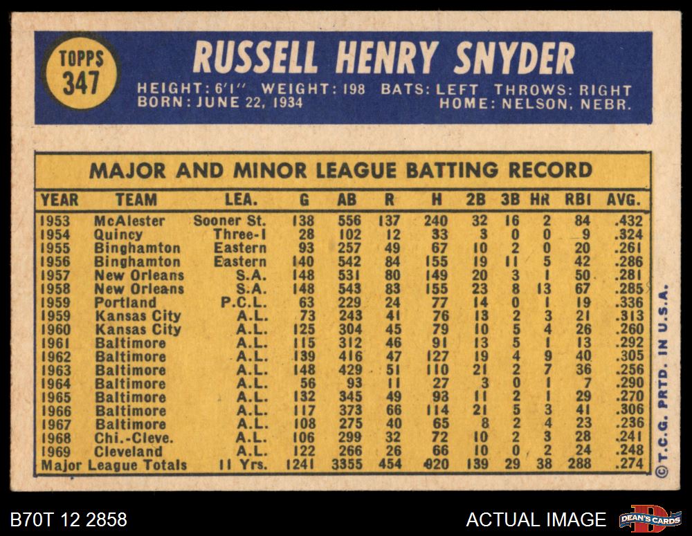 1970 Topps #347 Russ Snyder 6 - EX/MT