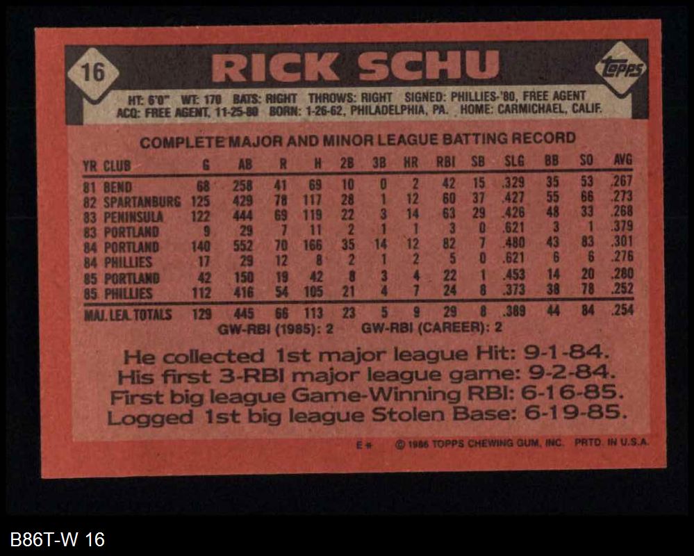 1986 Topps #16 Rick Schu