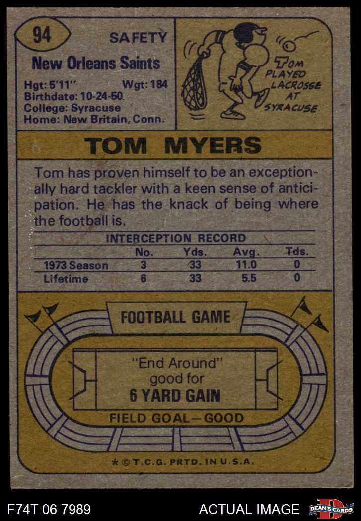 1974 Topps #94 Tom Myers 3 - VG