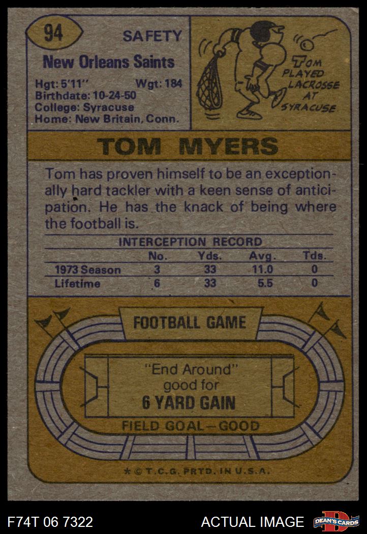 1974 Topps #94 Tom Myers 5 - EX