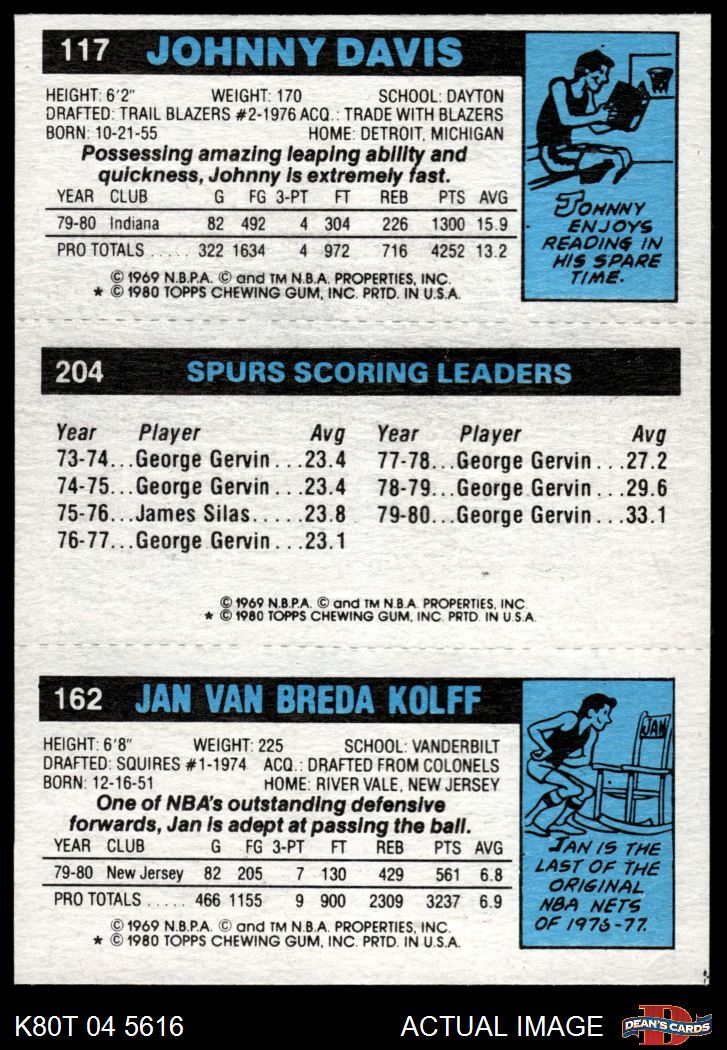 1980 Topps - Jan Van Breda Kolff / George Gervin / Johnny Davis 162 / 204 / 117 2 - GOOD