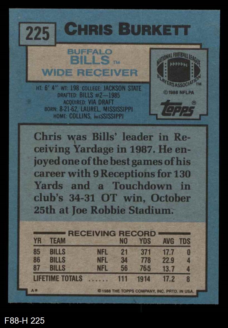 1988 Topps #225 Chris Burkett 8 - NM/MT