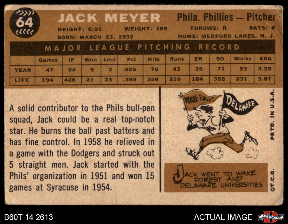 1960 Topps #64 Jack Meyer Front Thumbnail