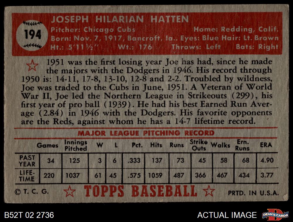 1952 Topps #194 Joe Hatten 2 - GOOD