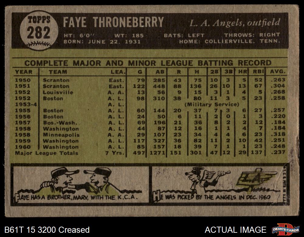 1961 Topps #282 Faye Throneberry 2 - GOOD