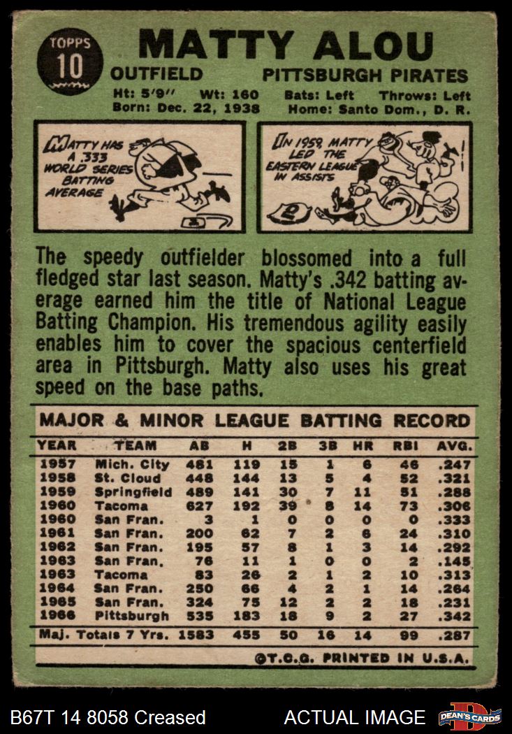 1967 Topps #10 Matty Alou 1 - POOR