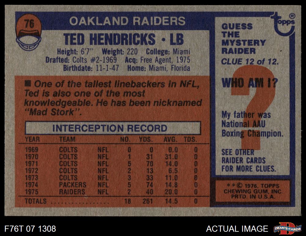 1976 Topps #76 Ted Hendricks 6 - EX/MT