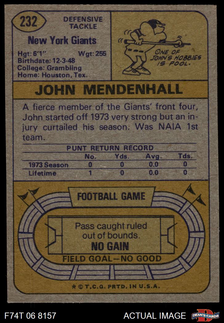 1974 Topps #232 John Mendenhall
