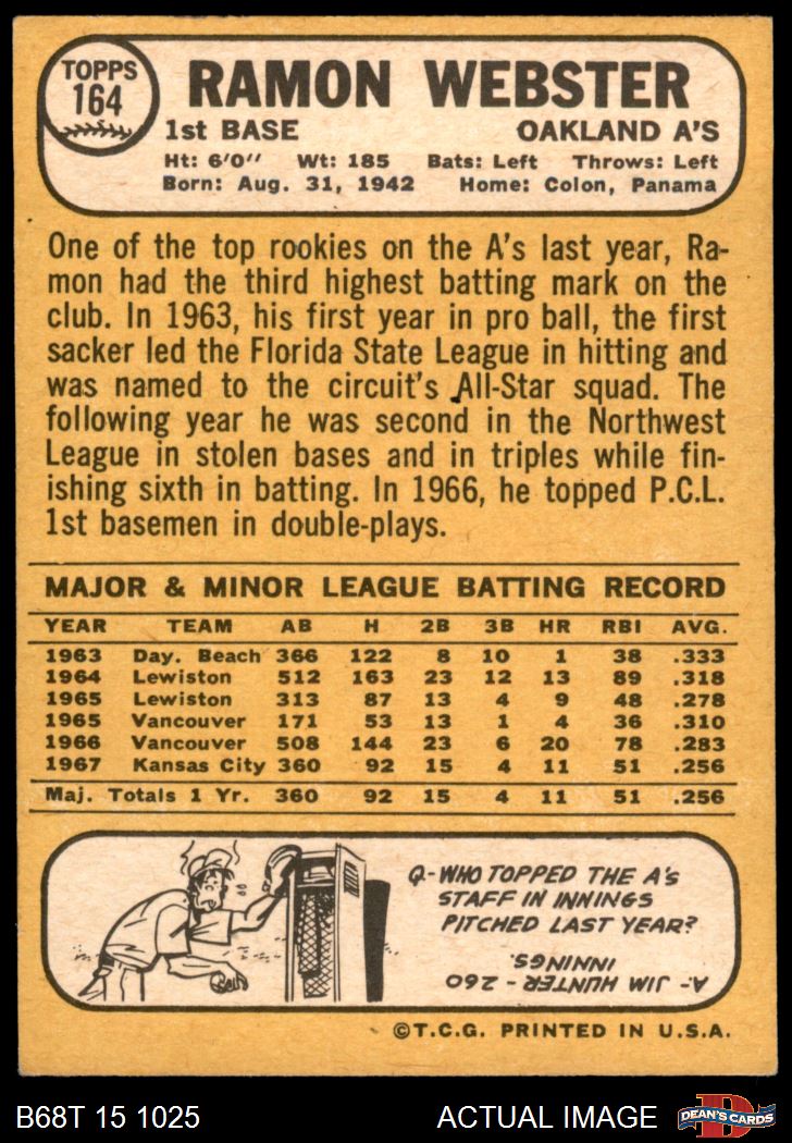 1968 Topps #164 Ramon Webster 6 - EX/MT