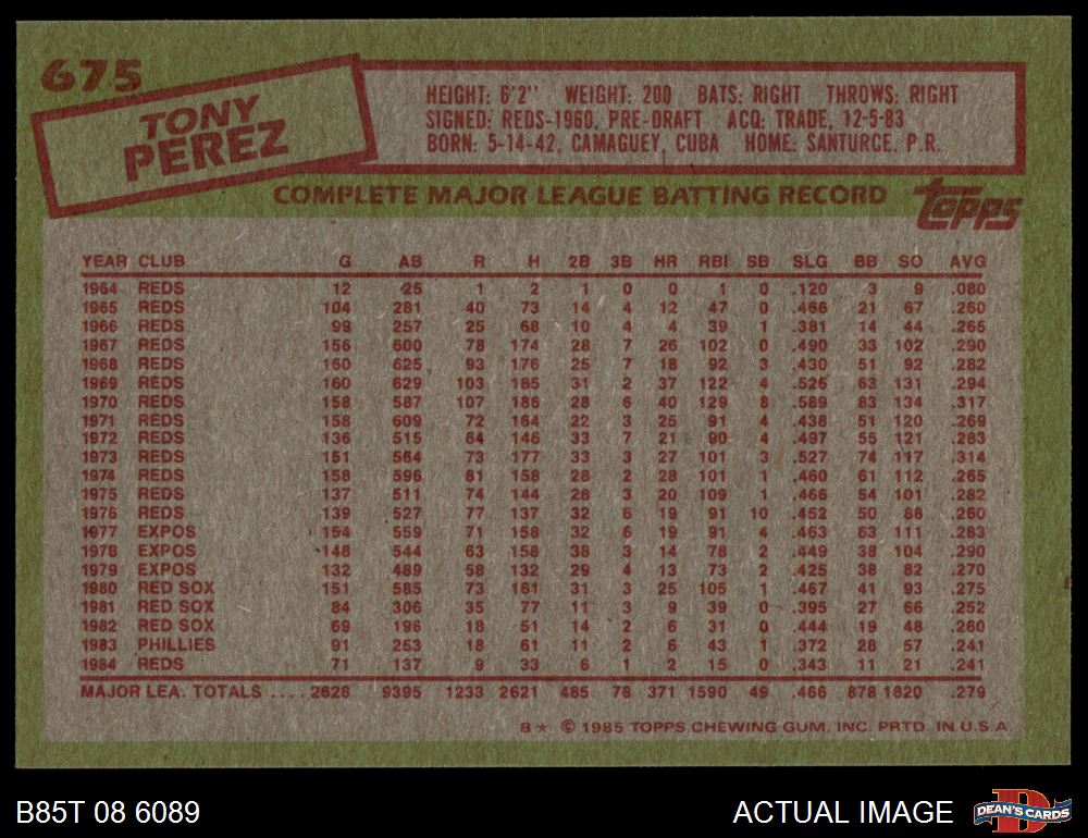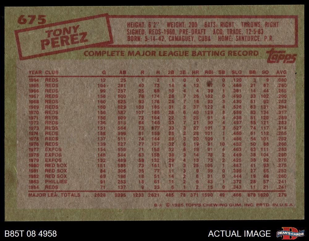 1985 Topps #675 Tony Perez 8 - NM/MT