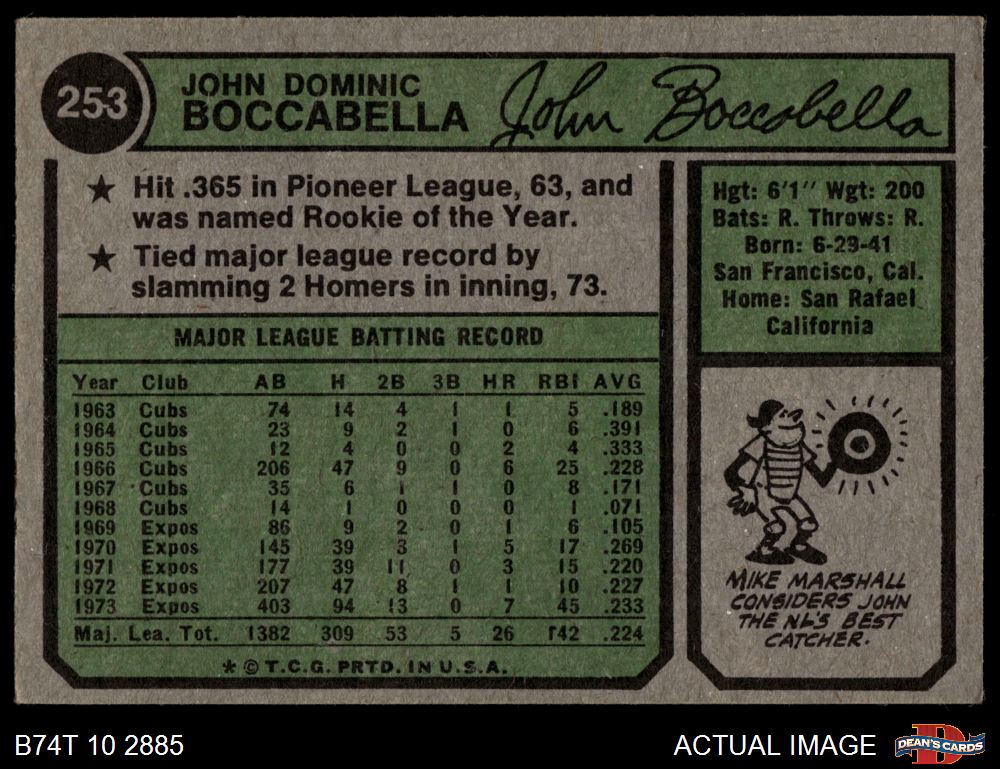 1974 Topps #253 John Boccabella