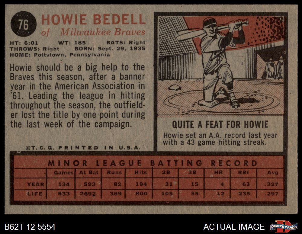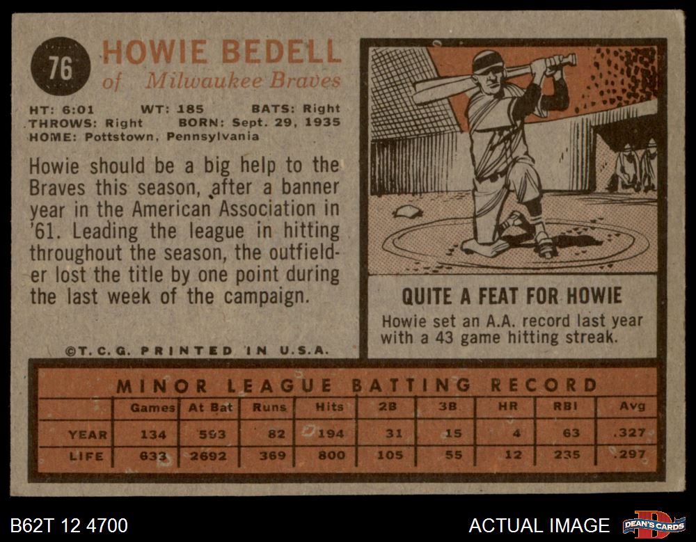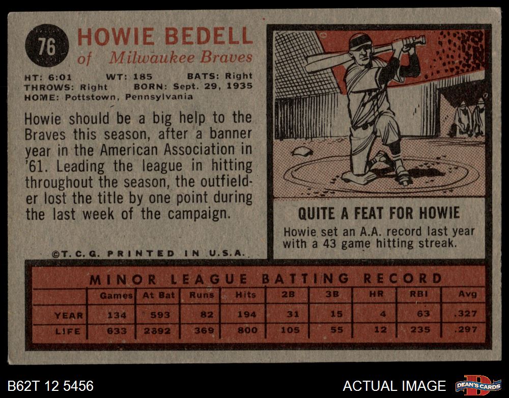 1962 Topps #76 Howie Bedell