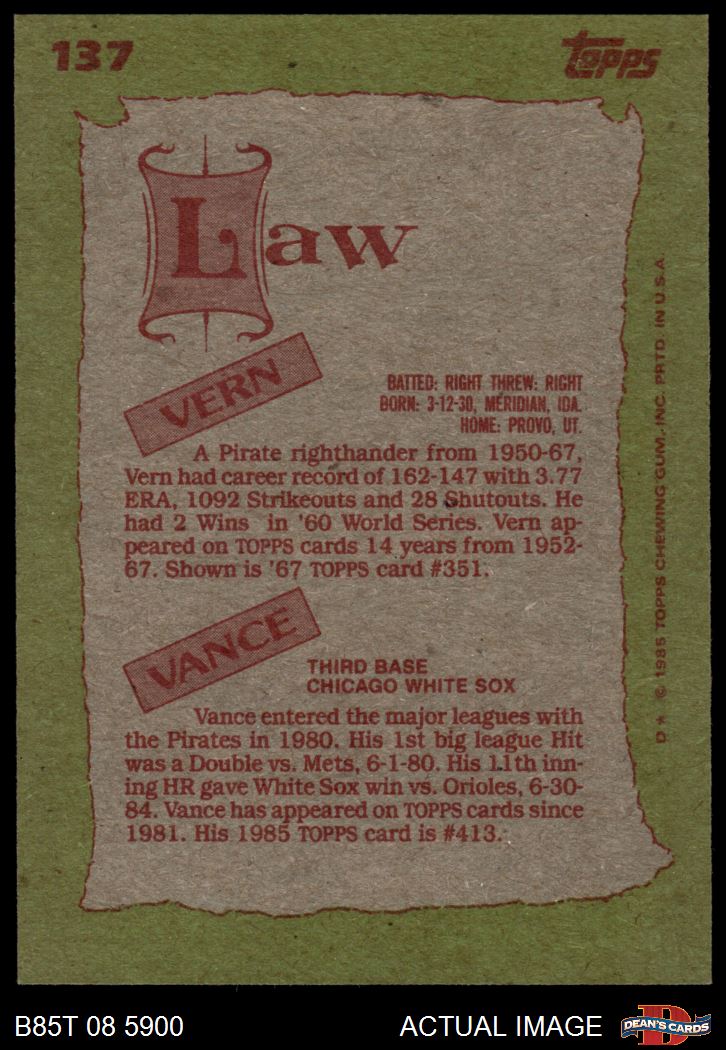 1985 Topps #137 - Vance Law / Vern Law Father & Son 6 - EX/MT