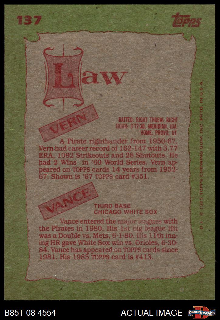 1985 Topps #137 - Vance Law / Vern Law Father & Son 8 - NM/MT