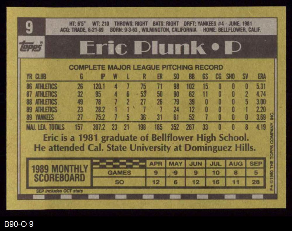 1990 Topps #9 Eric Plunk 8 - NM/MT
