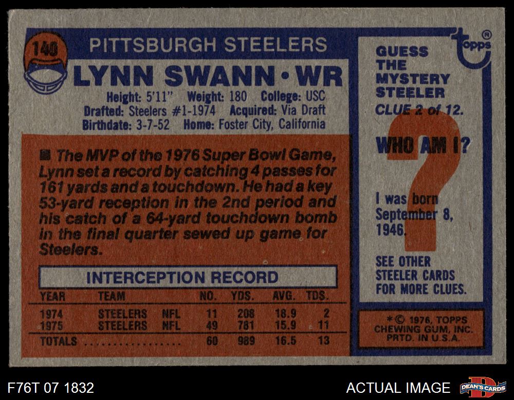 1976 Topps #140 Lynn Swann