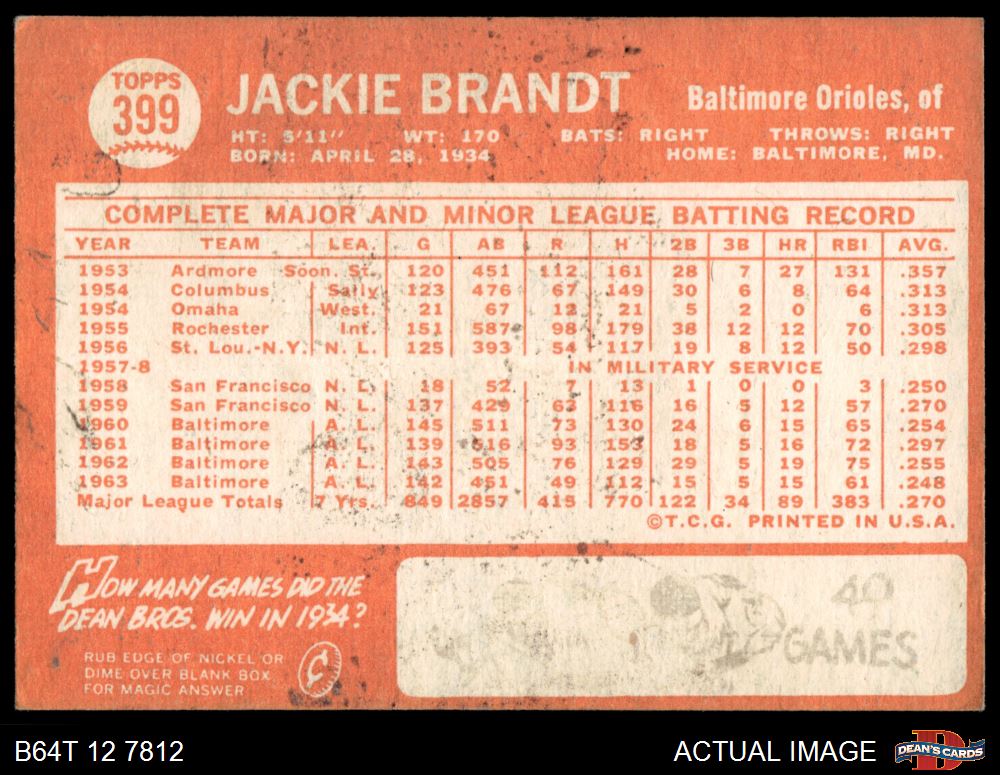 1964 Topps #399 Jackie Brandt 2 - GOOD