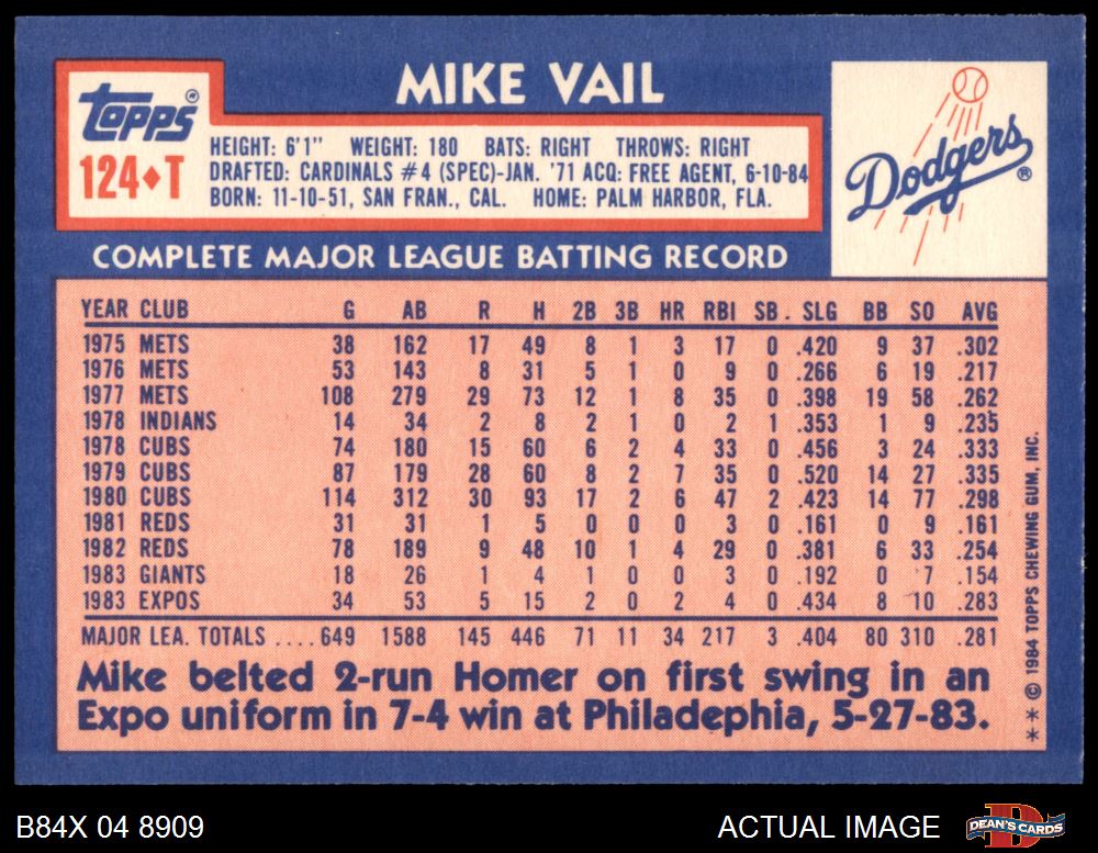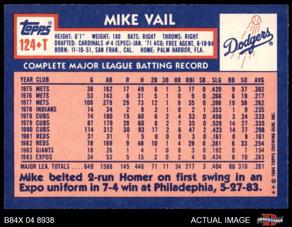 1984 Topps Traded #124 Mike Vail 8 - NM/MT