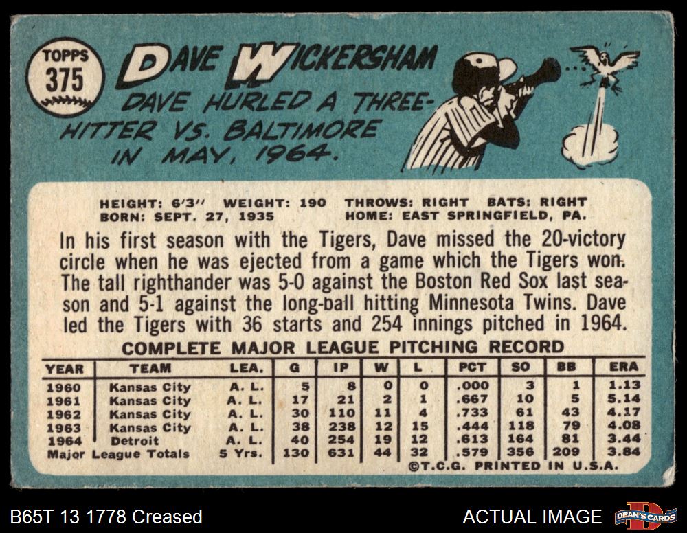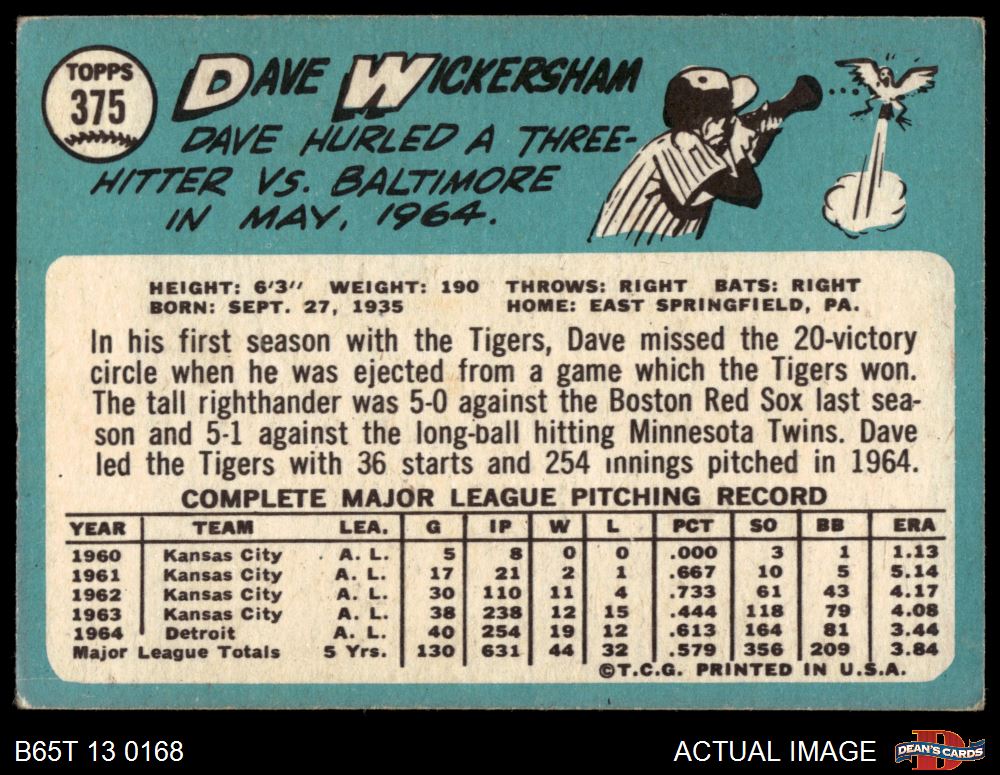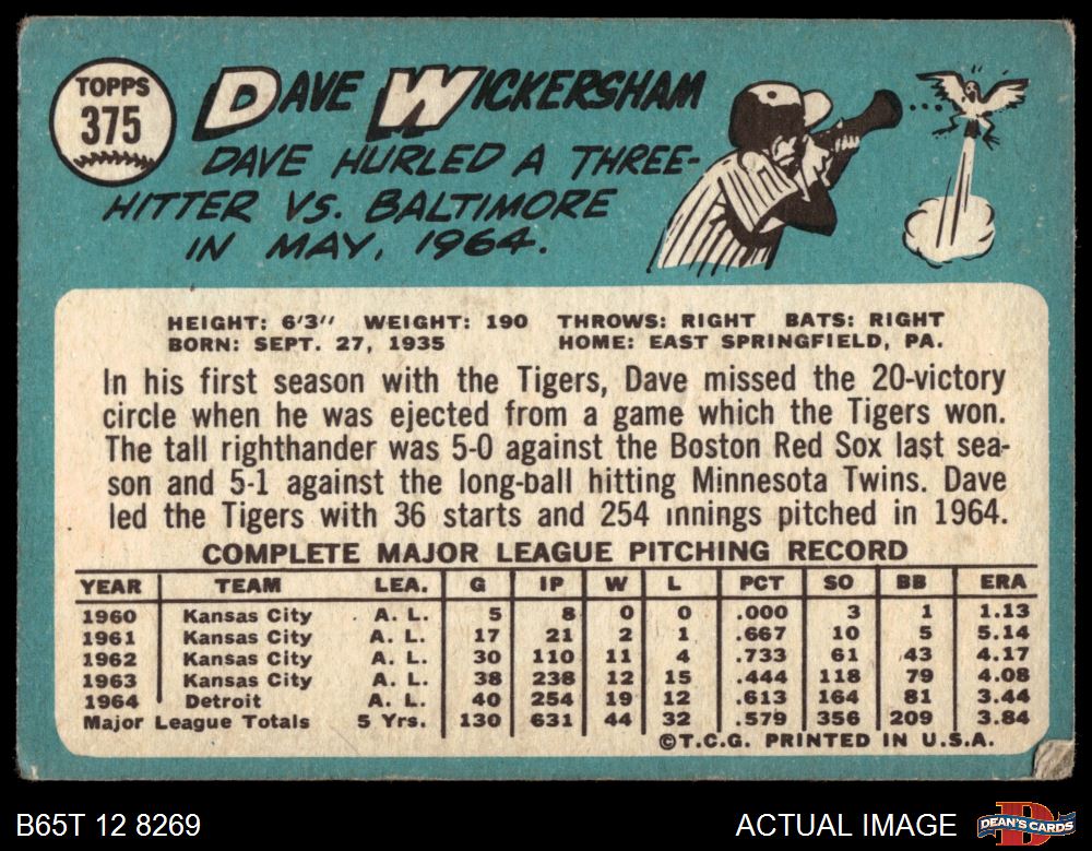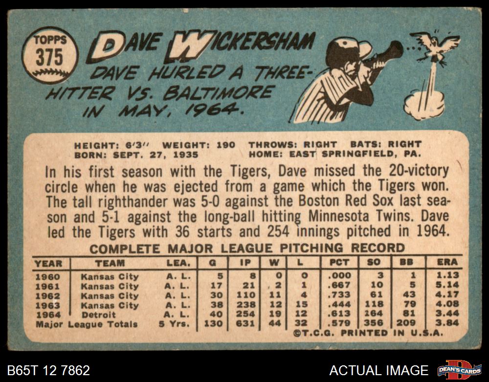 1965 Topps #375 Dave Wickersham 2 - GOOD