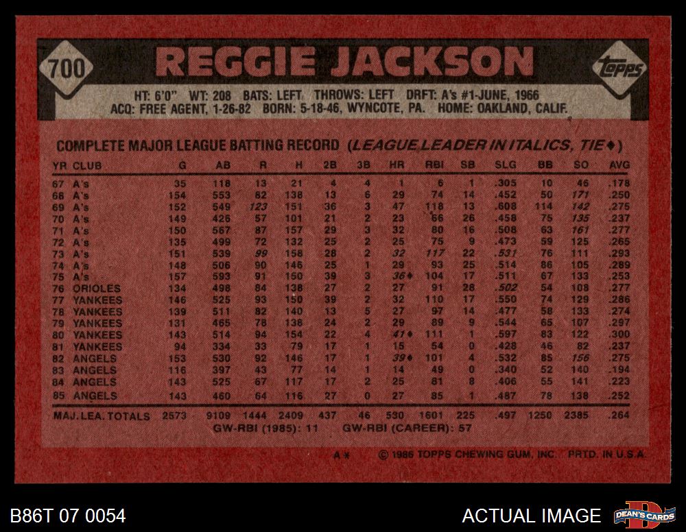 1986 Topps #700 Reggie Jackson 8 - NM/MT