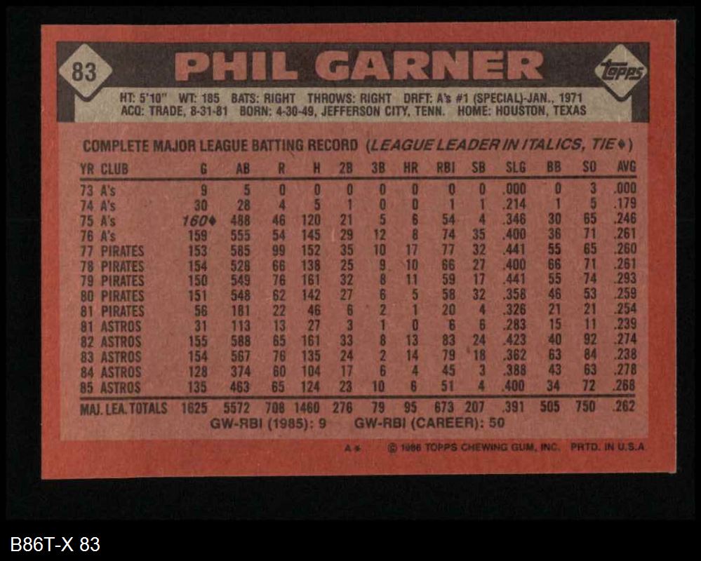 1986 Topps #83 Phil Garner