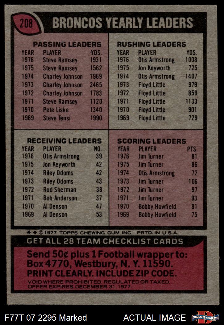 1977 Topps #208  Broncos Team Checklist Front Thumbnail