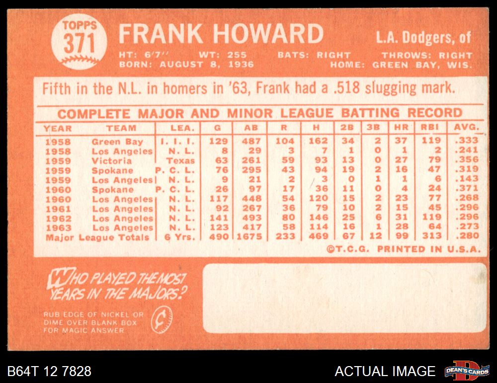 1964 Topps #371 Frank Howard 4 - VG/EX