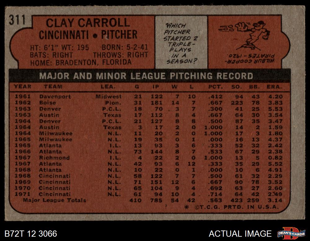 1972 Topps #311 Clay Carroll