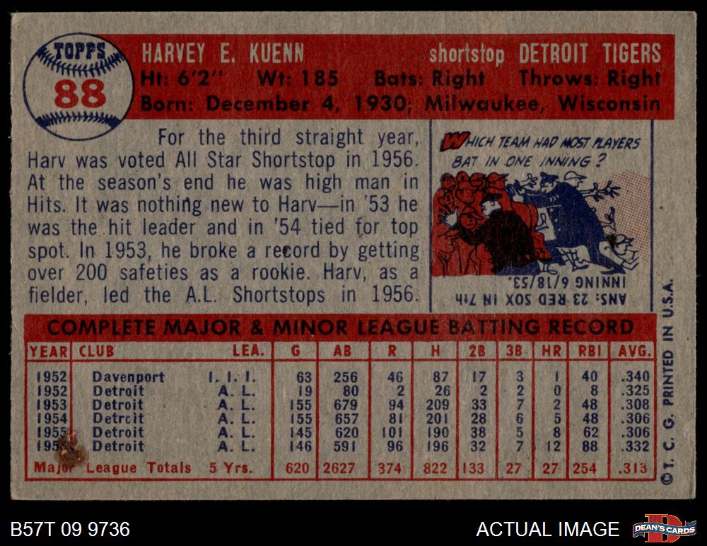 1957 Topps #88 Harvey Kuenn 3 - VG