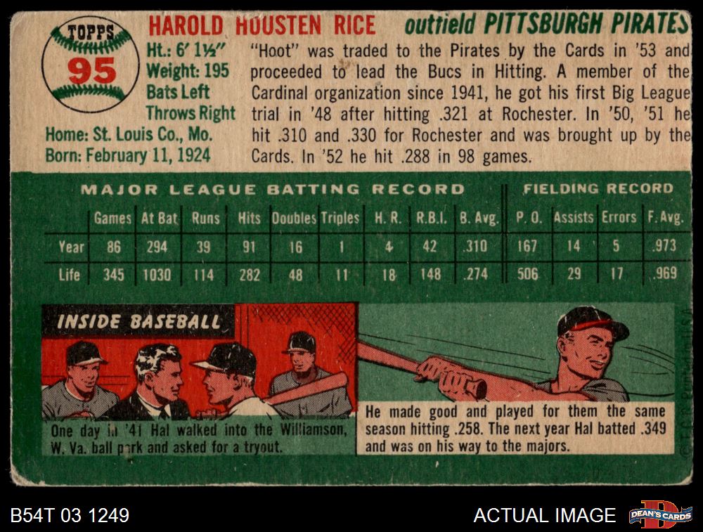 1954 Topps #95 Hal Rice 1.5 - FAIR