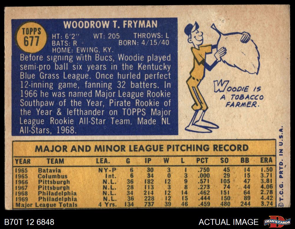 1970 Topps #677 Woody Fryman 3 - VG